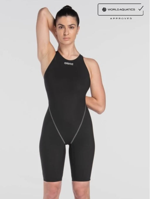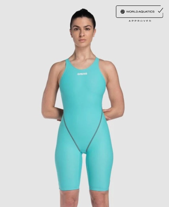 - Our Women’s Open Back Powerskin ST Next is the world’s first FINA-approved tech suit to include recycled fabric in its design. Over 60% of the material used comes from pre and post-consumer textile waste that would have otherwise ended up in landfills. This revamped version of the ST is longer lasting and 20% lighter for faster swimming and minimal drag. With flatlock seams and reinforced shoulder straps, experience comfort, support and a lifted feeling in the water. Designed for the optimal balance of compression and ease of use, it is the perfect entry-level tech suit or advanced training swimsuit. Available in a range of cool contemporary colours.